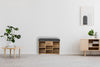 Crafted with care, each piece is individually handcrafted, ensuring uniqueness and high-quality craftsmanship. This stylish bench is a functional addition to any home, providing a comfortable place to sit while putting on shoes or coats.