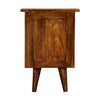 The bedside is finished in a rich chestnut stain, enhancing the natural grain and providing a sophisticated, timeless look.