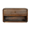 Effortlessly stylish and space-saving, the Chestnut Curve Floating Bedside is the perfect fusion of contemporary design and practical functionality. Handcrafted from 100% solid mango wood with a rich chestnut finish, this wall-mounted bedside table is ideal for modern interiors where clean lines and minimalist aesthetics are key.
