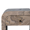 Introducing the Nouveau Bedside, a true embodiment of refined luxury and timeless elegance. Crafted from premium solid mango wood with an oak-ish finish inside the drawer, this exquisite bedside features a laminated marble-effect stone veneer on the body, elevating it to a sophisticated statement piece. The sleek design is complemented by a shiny brass round knob, adding a touch of opulence and sophistication. Perfect for high-end bedrooms, the Nouveau Bedside offers both functional storage and unparalleled style, making it an essential addition to any upscale interior.